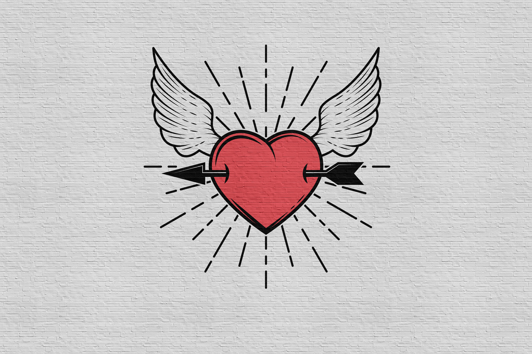 Obraz na plátně Walls by Patel 2 – Srdce s křídly a šípem tattoo