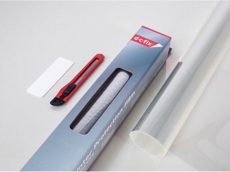 Bezpečností fólie D-C-FIX na sklo - okna, prosklená dveře. Fólie je samolepící o rozměrech 90 x 200 cm. Bezpečností fólie je vybavena speciaální vrstvou lepidla, které na sebe váže střepy po rozbití skla a zabraňuje jeho vysypání a poranění střepy.
