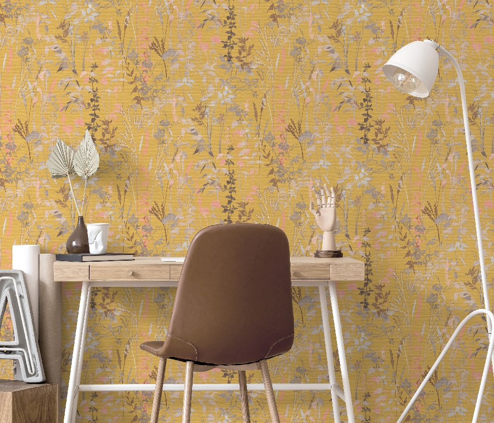 Design tapet COTTAGE se svými jemnými listy a trávami připomíná bujnou louku s divokými květy. Úžasně hravý, lehký a vzdušný, hodí se k aktuálnímu trendu bydlení „Modern Country“. Barvy sahají od jemných přírodních tónů až po efektní kombinaci mědi a aqua na tmavém pozadí.