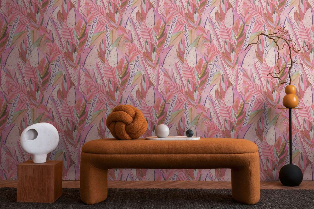 5. Tapeta na zeď ANNA and ANDREA, listy růžová